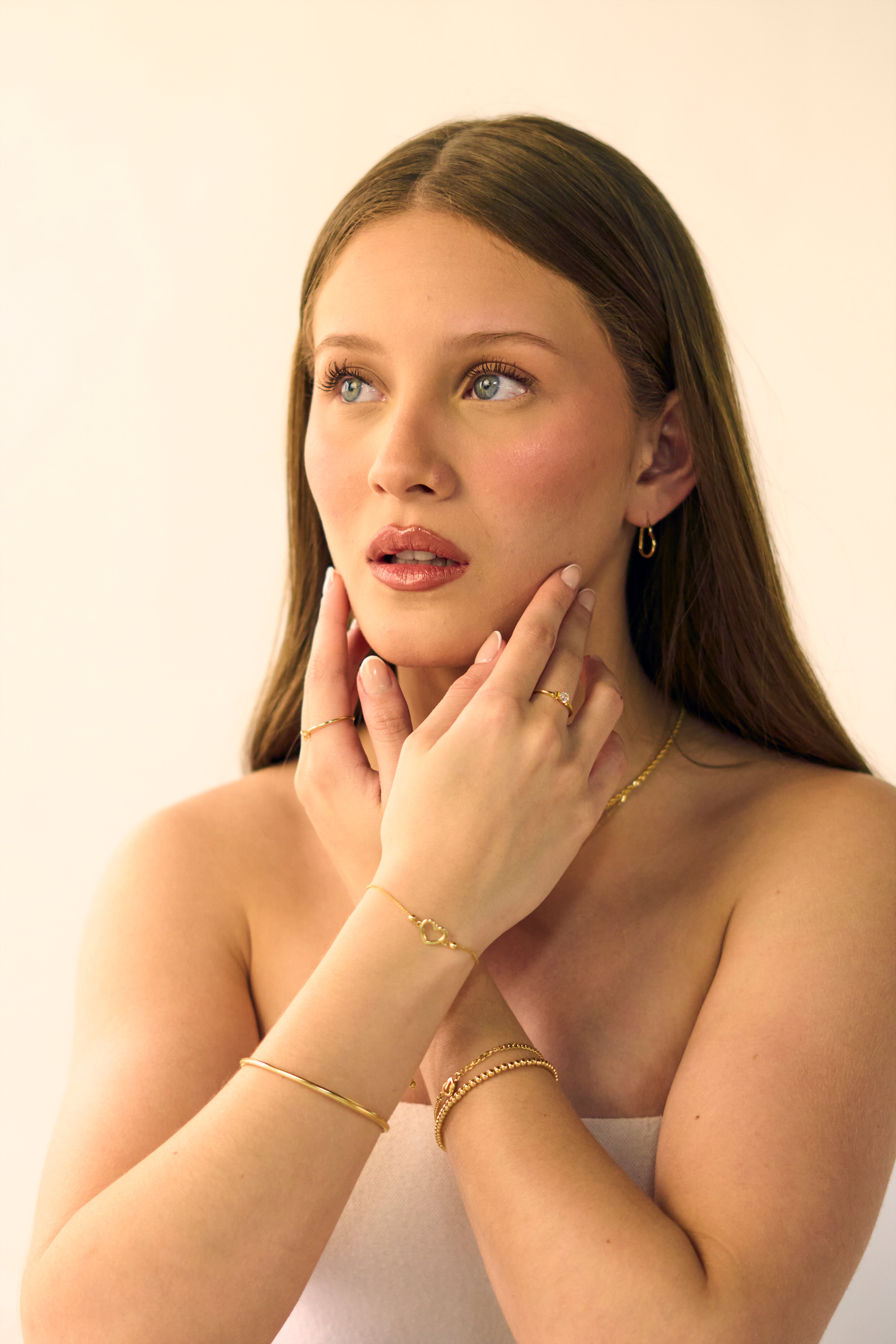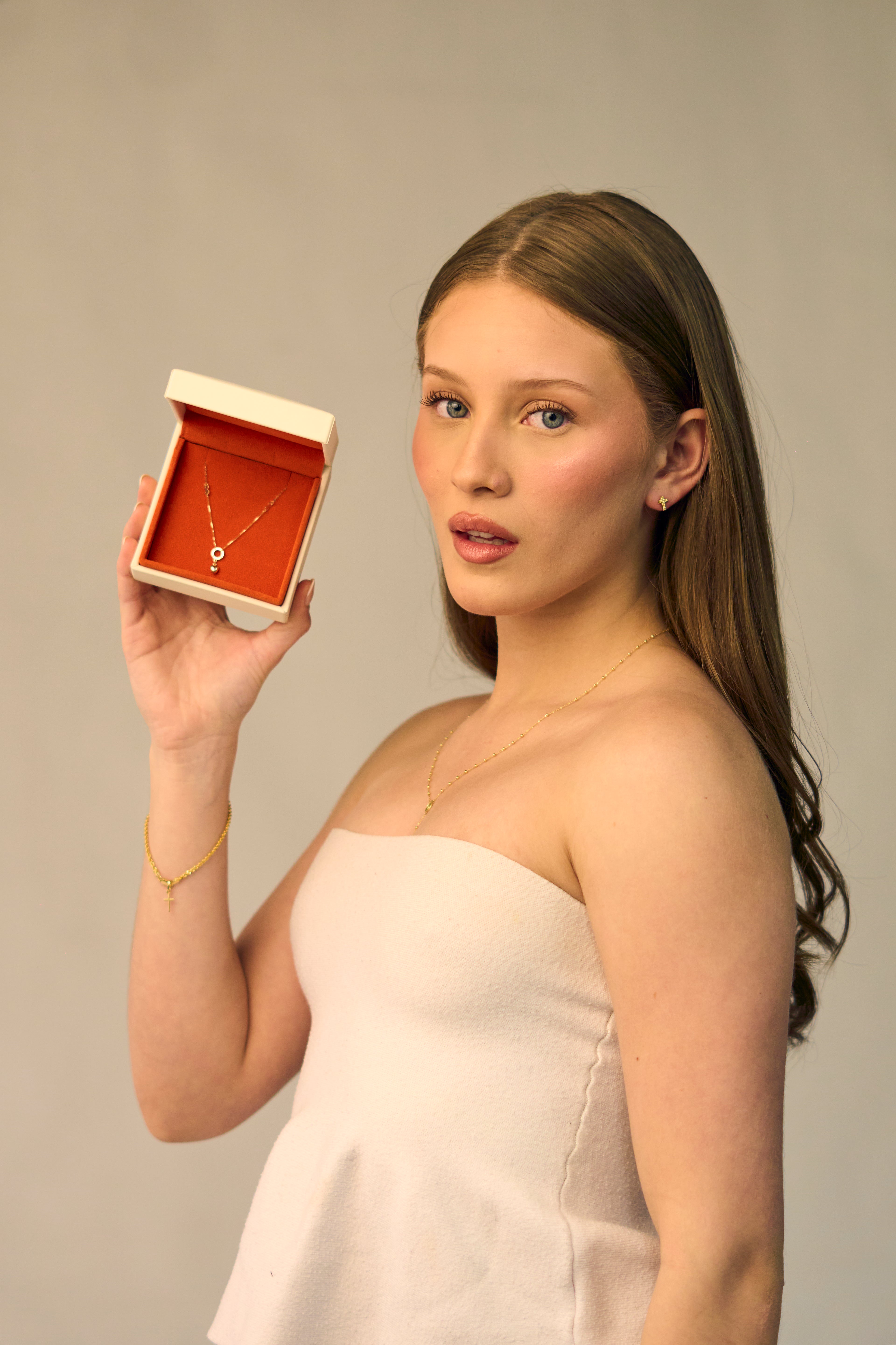 Cada pieza está elaborada en oro italiano de 18 quilates, reconocido por su brillo cálido, durabilidad y elegancia atemporal. Un material noble que trasciende el tiempo y mantiene su esencia intacta.